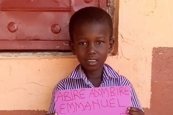 My name is Emmanuel Abire. My birthday is January 3, 2017. I live in the village of Vea, Ghana, where I attend school. I have a brother named Benedict Aduko and a sister named Christable Aduko and if you would like to sponsor them also you can search for them by name.