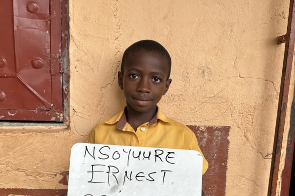 My name is Ernest. My birthday is July 3, 2013. I live in the village of Vea, Ghana, where I attend school.More about the village of Vea:
