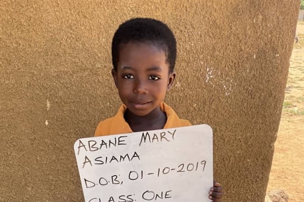 My name is Mary. My birthday is October 1, 2019. I live in the village of Vea, Ghana, where I attend school.More about the village of Vea: