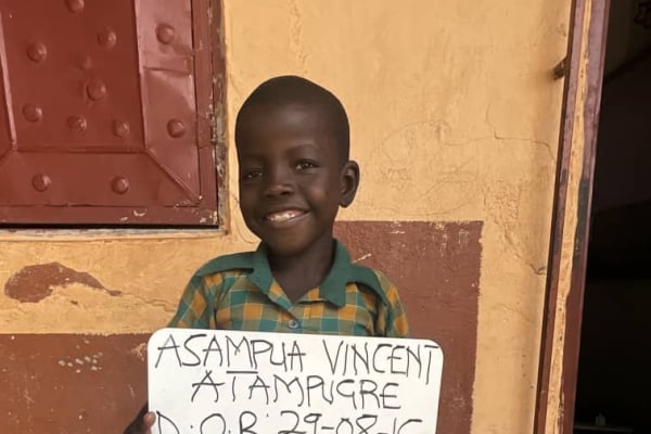 My name is Vincent. My birthday is August 29, 2016. I live in the village of Vea, Ghana, where I attend school.More about the village of Vea: