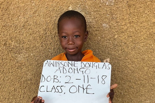 Hello, my name is Douglas. My birthday is November 2, 2018. I live in the village of Vea, Ghana, where I attend school.